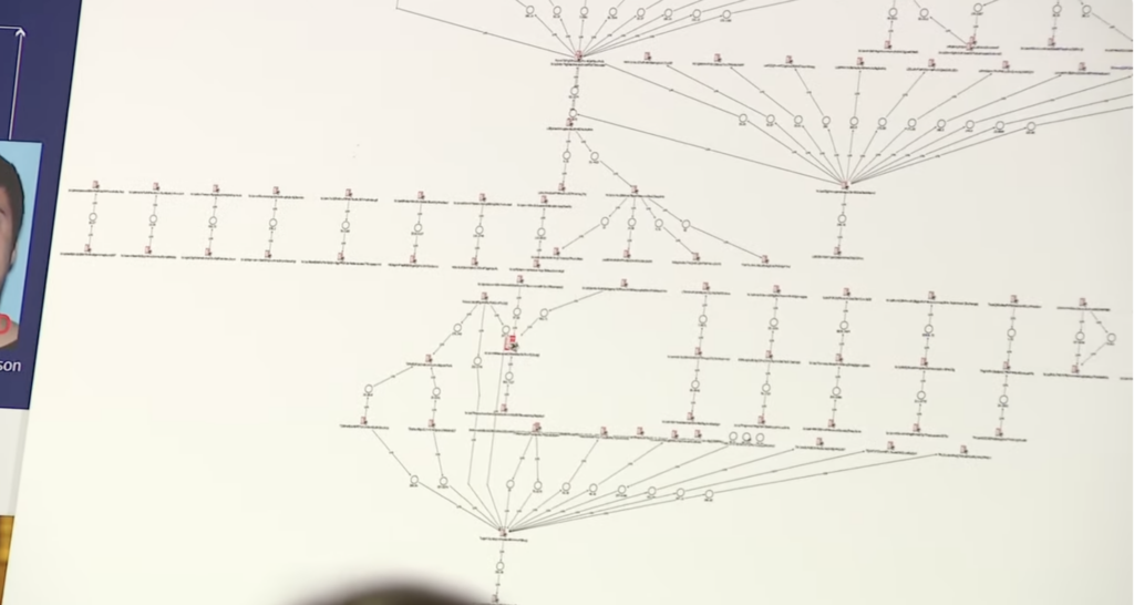 Please view below the partial screenshot from the press conference showing the flow chart illustrating Bozuyuk’s intricate attempts to mask his identity with VPNs and multiple burner phones: