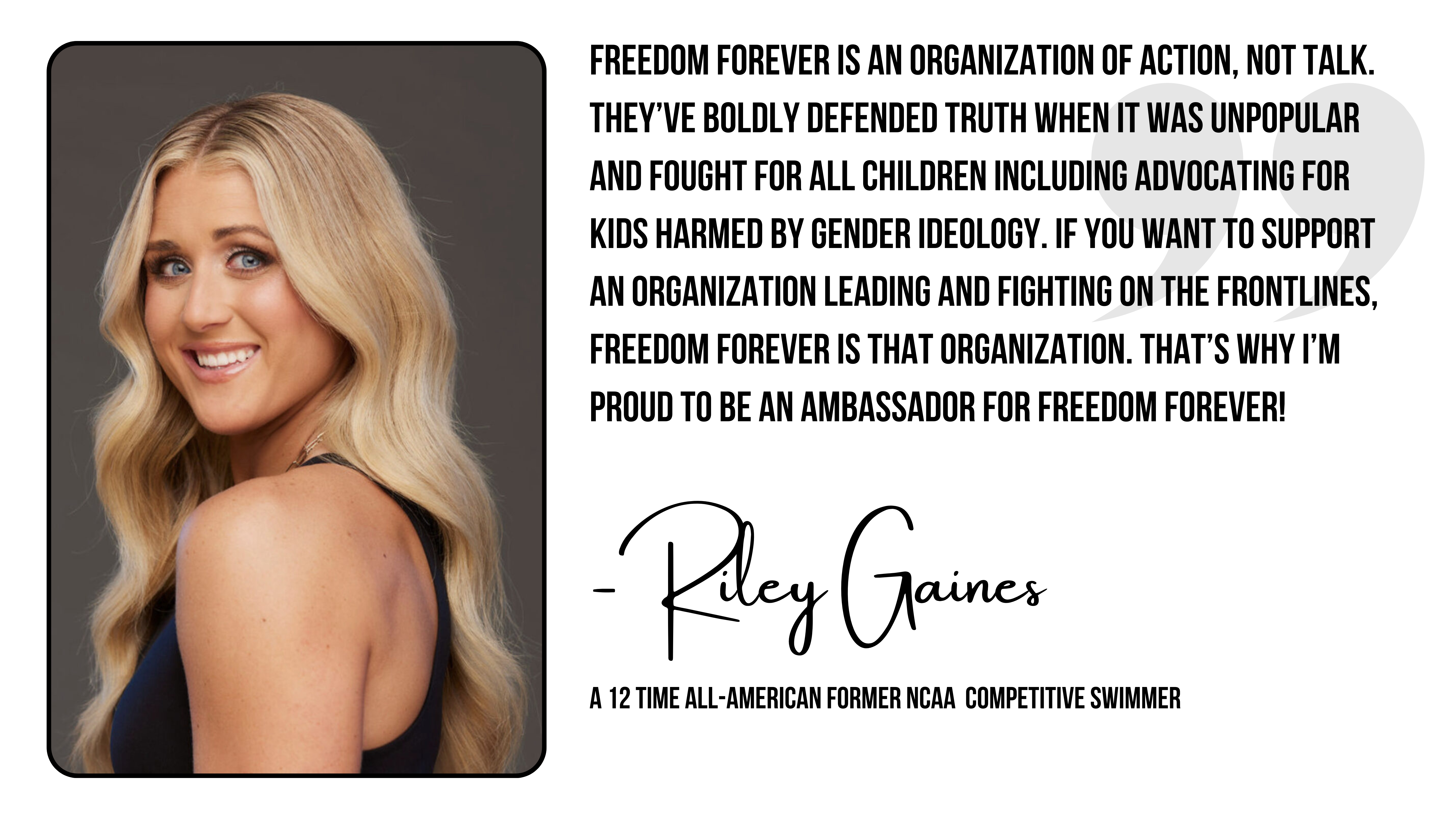 “Freedom Forever is an important non-profit with a focus on preventing and rescuing children from experiencing any type of sexual or predatory harm. As someone who was harmed by gender ideology and some of the adults around me, I am grateful and inspired to see an organization which values the innocence and goodness of children and seeks to protect them. An ounce of prevention is worth a pound of cure.”