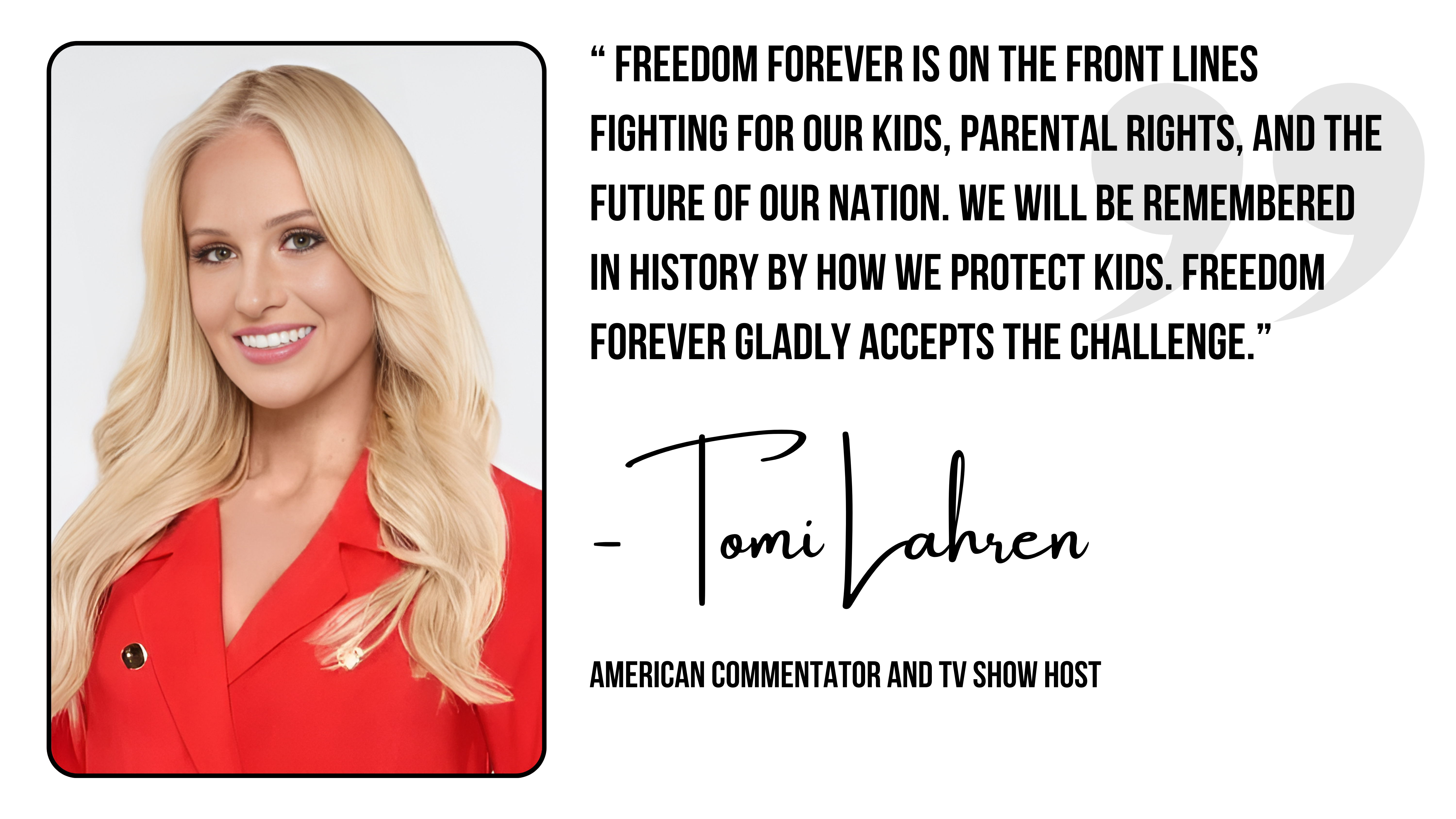 "Freedom Forever has been an invaluable moral support and resource in the campaign against child cross-sex experimentation, particularly in Tennessee. Their assistance was crucial in the most effective nationwide campaign to shield children from gender ideology."
