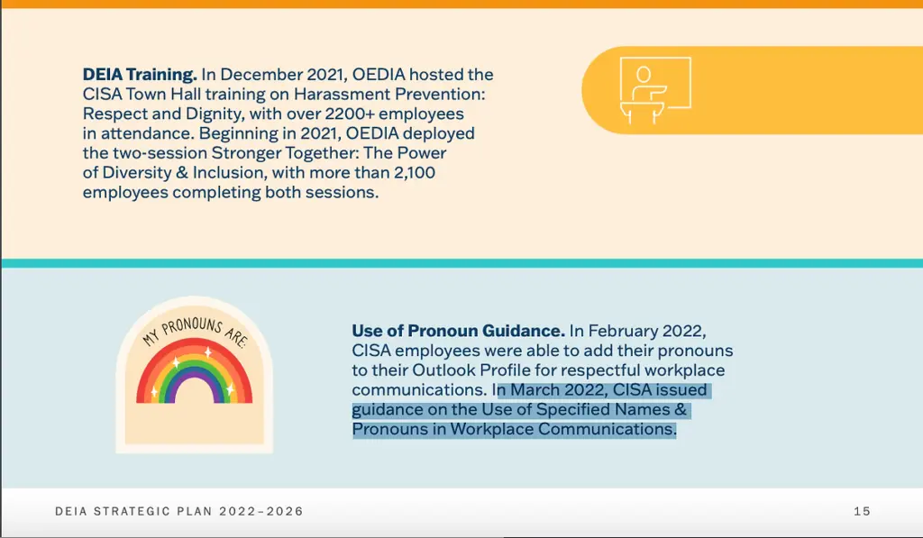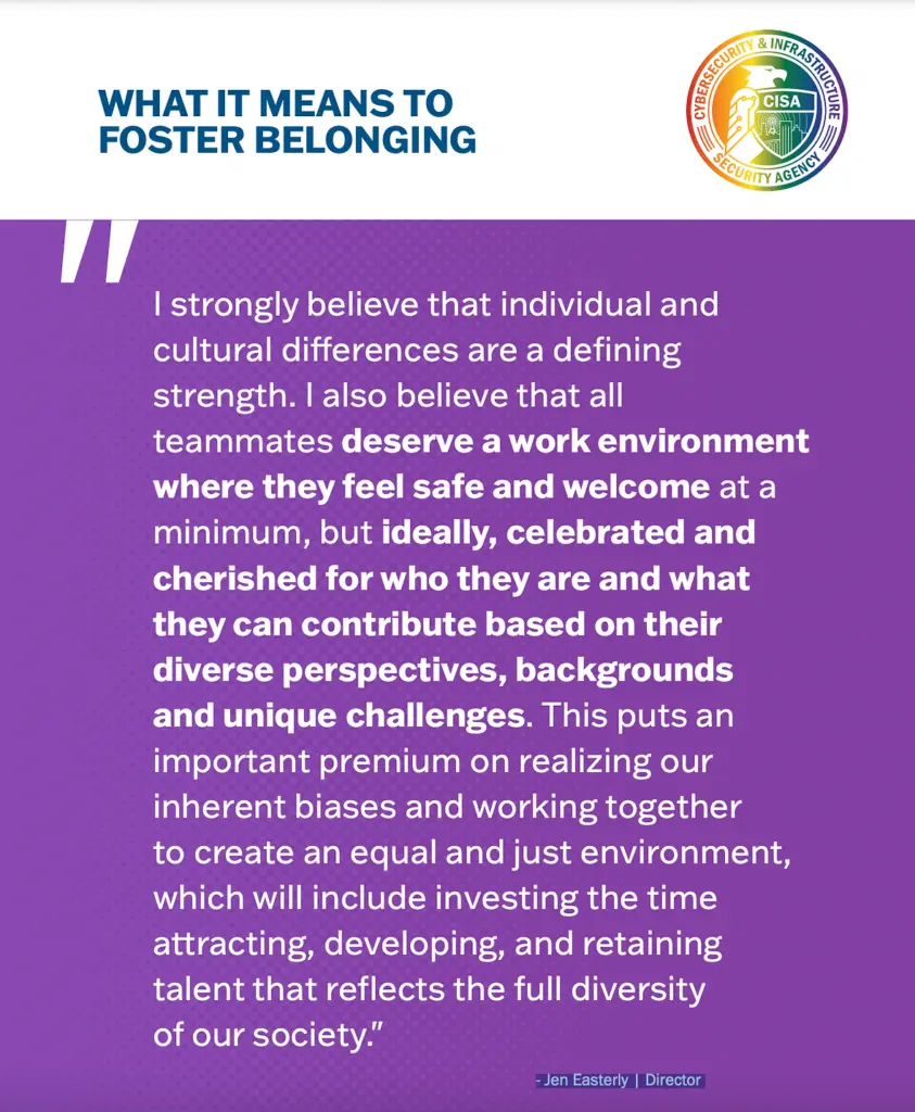 By the way, CISA should be in charge of the nation’s national security infrastructure not DEI initiatives. Sounds a lot like the political weaponization of government agencies to me. CISA’s 2022-2026 DEIA Strategic Action Plan can be found here on its website.